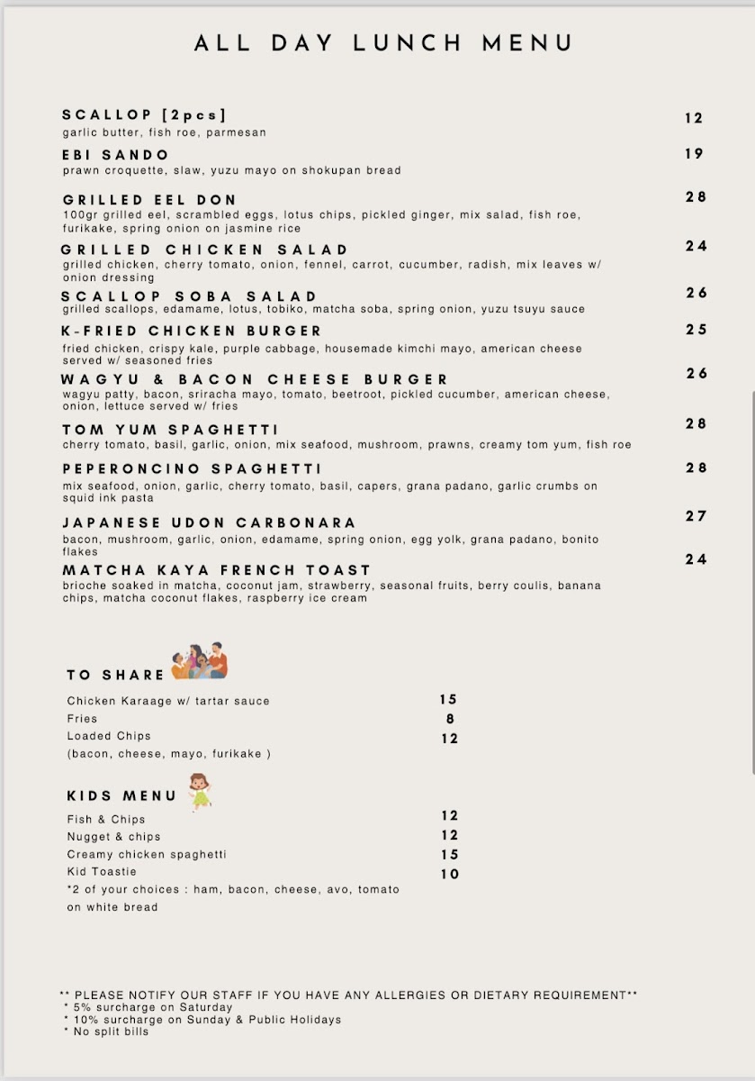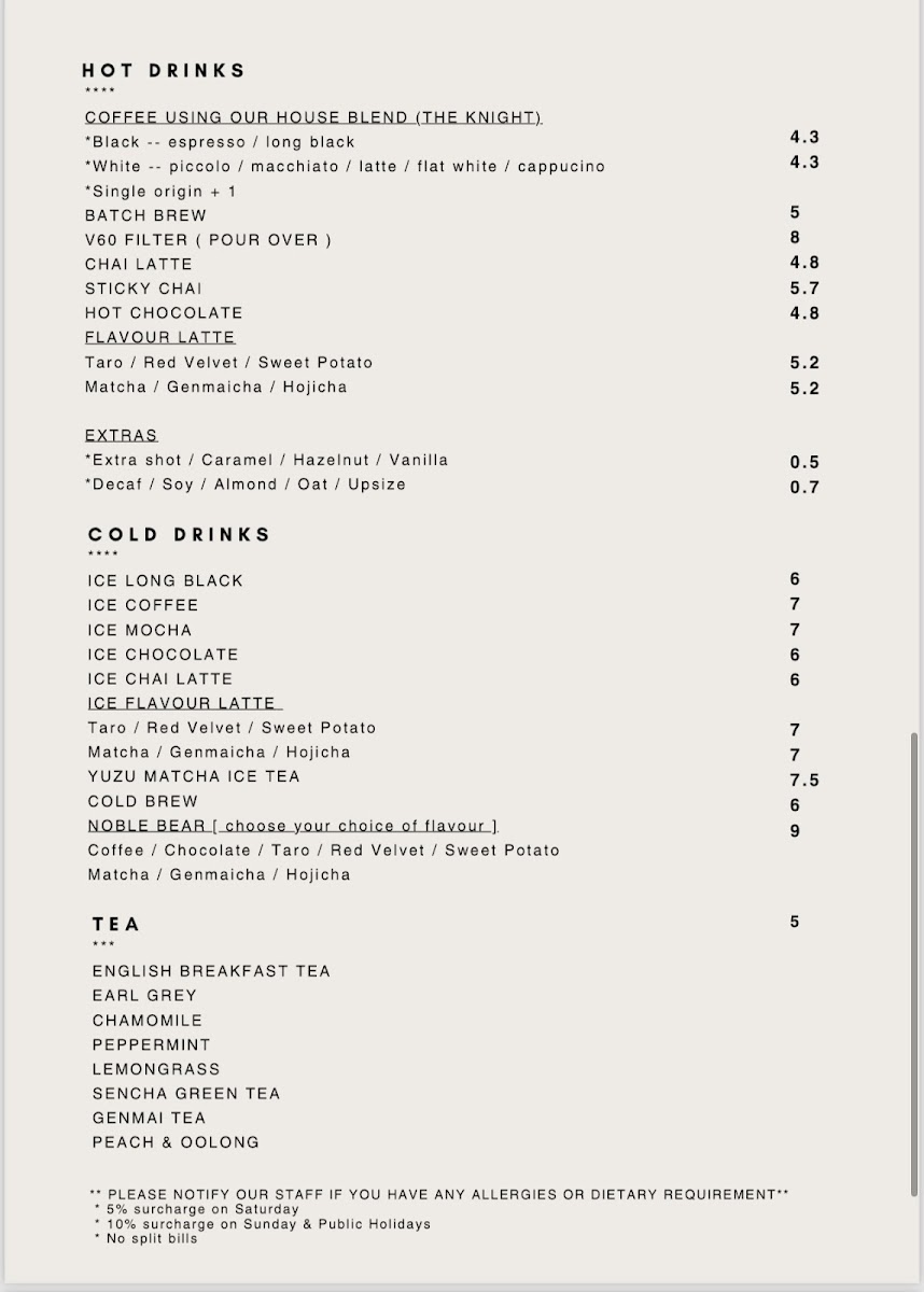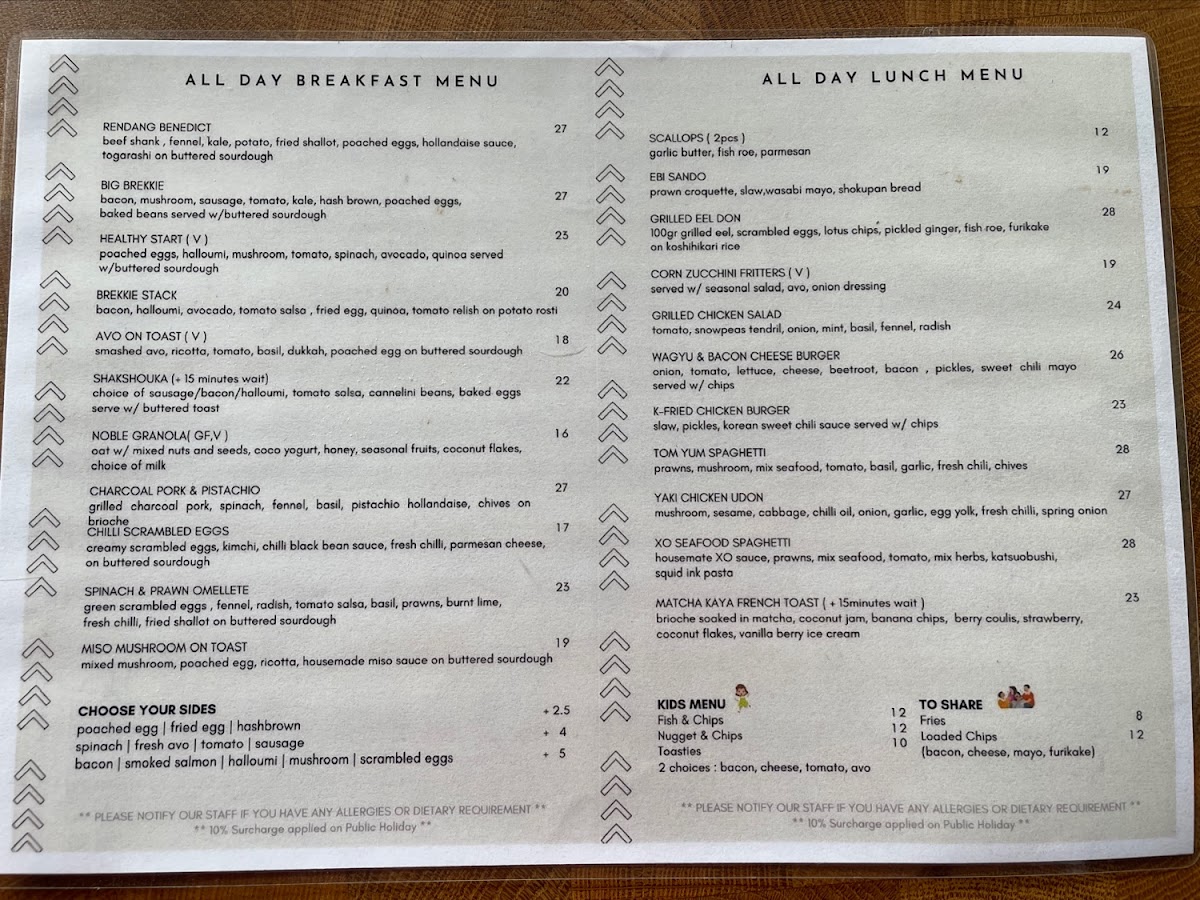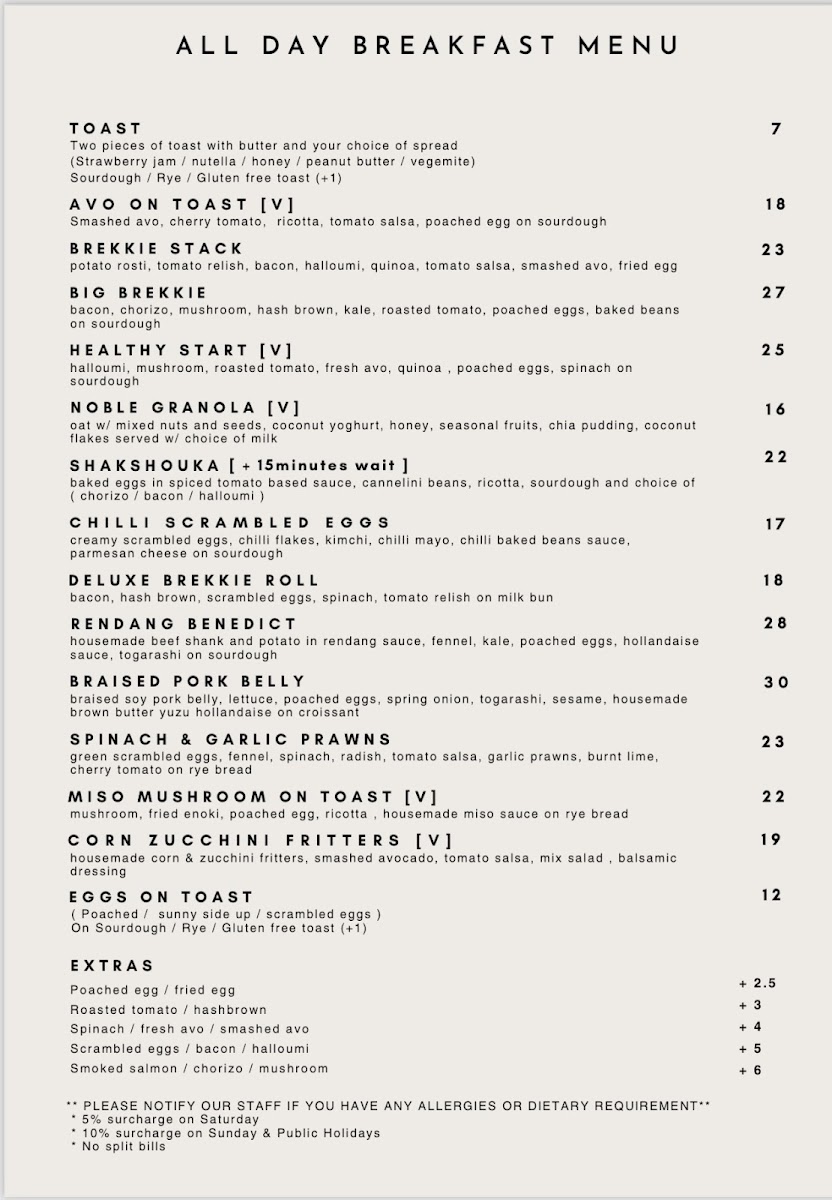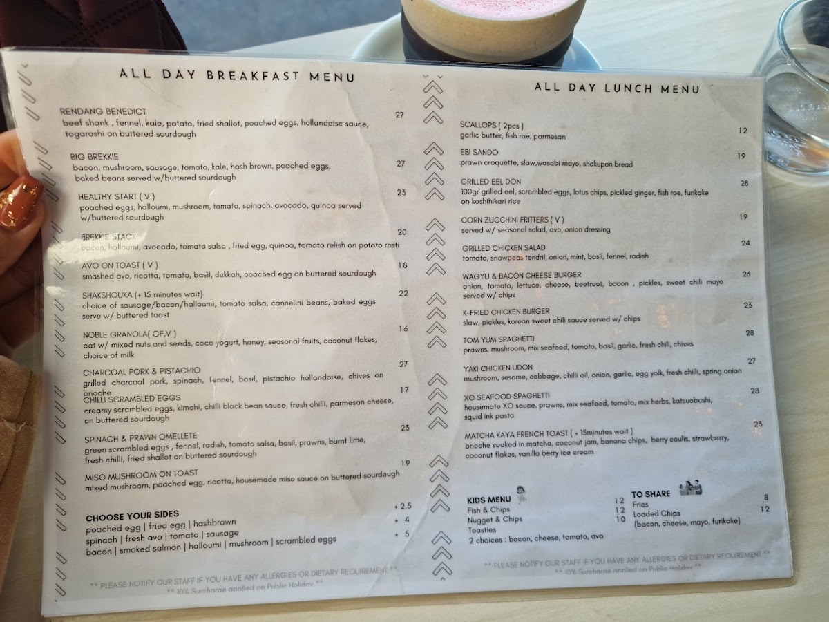 Noble Roasters at 5/22 Danks St, Waterloo NSW 2017 keeps its menu focused, approachable, and easy to enjoy any time of day-especially if you like a café that does the classics well while still offering a few fun, modern plates. For breakfast, the all-day lineup (from Toast and Avo On Toast to Brekkie Stack, Big Brekkie, and Healthy Start) sets a comforting tone that suits both quick bites and slower brunch catch-ups. Lunch continues that relaxed, café-style versatility with options like Grilled Chicken Salad, Scallops ( 2pcs ), Japanese Udon Carbonara, Tom Yum Spaghetti, and the ever-satisfying Ebi Sando, giving you plenty of choice whether you want something light or more indulgent. Drinks are clearly a highlight: you can stick with chilled staples like Iced Long Black, Iced Coffee, Iced Mocha, Iced Chocolate, and Iced Chai Latte, or go warm with reliable café favorites such as Cappuccino, Flat White, Latte, Mocha, and Espresso, plus filter options like Batch Brew and V60 for a cleaner, more nuanced cup. If you’re after something fruity and refreshing, the fizzy range-Sparkling Butterfly Pea, Passionfruit & Hibiscus, Strawberry Punch, Mango & Grapefruit, and Green Grape & Mint-adds a playful twist, while the Milkshakes (including Caramel Milkshake, Chocolate Milkshake, Espresso Milkshake, Strawberry Milkshake, and Vanilla Milkshake) feel like a treat without being overcomplicated. Families are well covered too with a straightforward kids menu (Kids Fish & Chips, Kids Nuggets & Chips, Kids Toastie), and the sides-Chicken Karaage W/ Tartar Sauce, Fries, and Loaded Chips-make it easy to round out any order. Overall, it’s the kind of menu that feels curated rather than crowded, with something for breakfast lovers, lunch seekers, coffee purists, and anyone just stopping in for a cold drink.